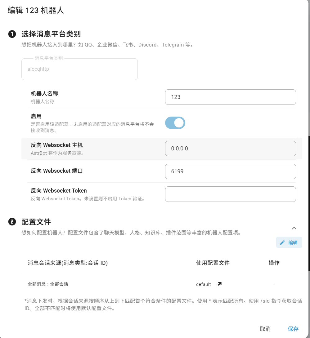 接下来机器人名称可以自定义其余选项和我的保持一致,出入完成后点击保存